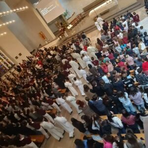 3 jours différents pour tous : salles de classes réorganisées, enseignements, jeux, découverte, conférences, partage, procession mariale, illumination de l’établissement, célébrations et confessions pour ceux qui le souhaitent. Chaque niveau a sa particularité et son prédicateur pendant 2 jours et le 3ème jour les écoles se réunissent le matin pour la messe au Sanctuaire, puis sur chaque site un repas de fêtes est servi par les terminales.